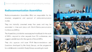 Radiocommunication Assemblies (RA) are responsible for the structure, programme and approval of radiocommunication studies.